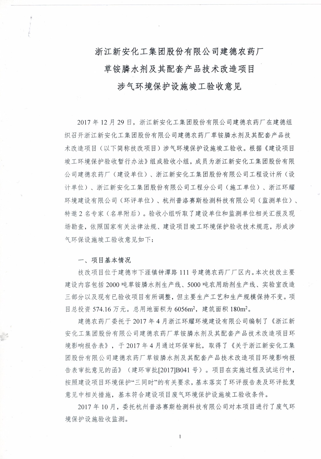 新安化工集團(tuán)股份有限公司建德農(nóng)藥廠草銨膦水劑及其配套產(chǎn)品技改項目進(jìn)入驗收公示