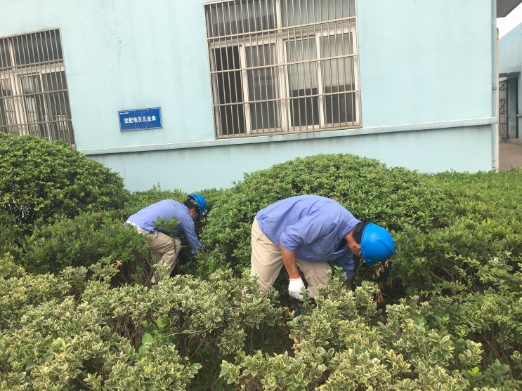 由于今年公司項目建設(shè),外來人員較多,現(xiàn)場相對零亂,綠化區(qū)域垃圾現(xiàn)象嚴重,有飲料瓶、餐巾紙、廢切割片、皮圈、破手套、棍子等,真可謂五花八門樣樣有。經(jīng)過一個半小時,7名黨員完成了綠化區(qū)域的大掃除,雖然一個個滿頭大汗,手臟了,衣服臟了,但看到廠區(qū)綠化區(qū)恢復(fù)了原來的干凈,大家心里都露出了笑容。